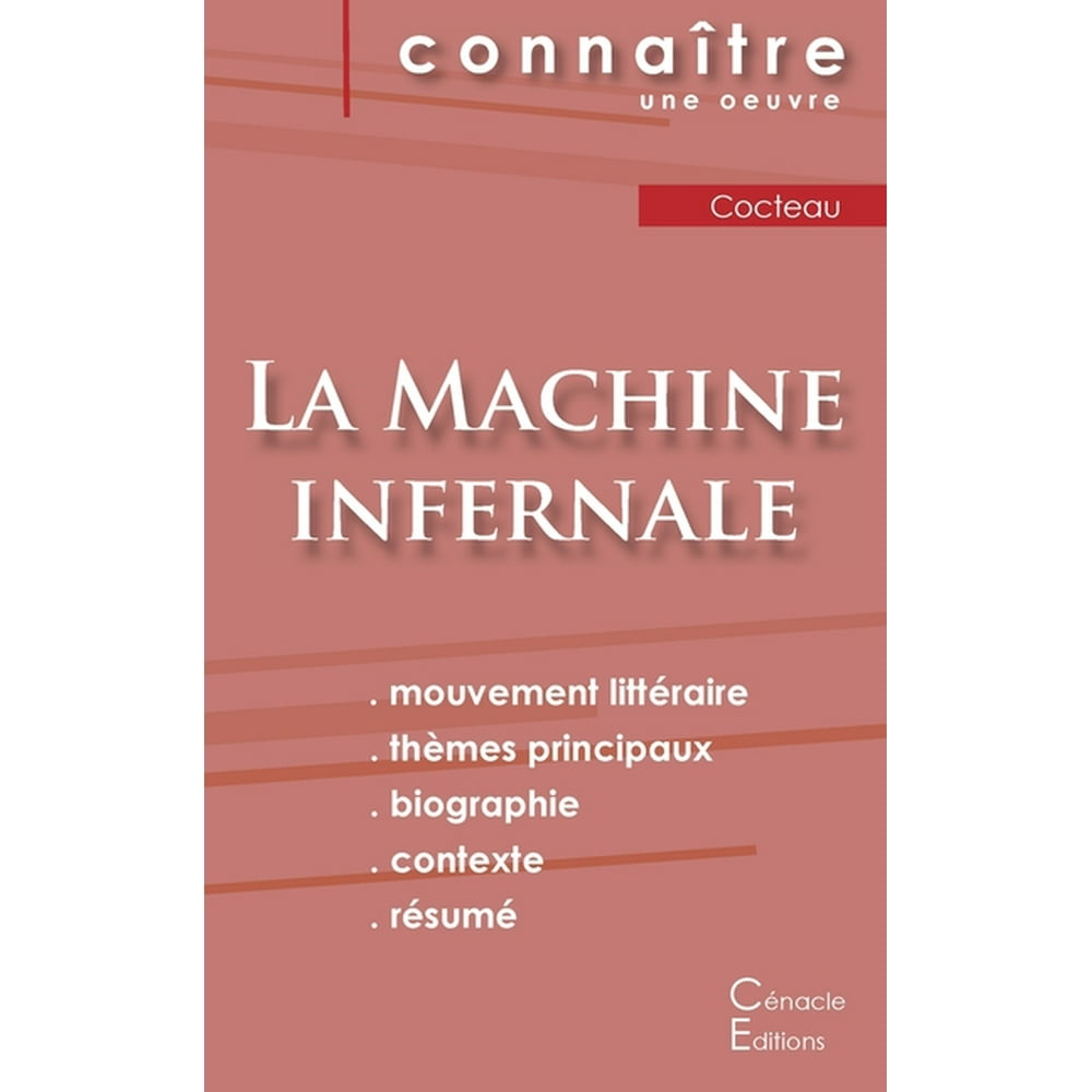 La Machine infernale, Jean Cocteau. 1934. Jean Cocteau. Genres. Théâtre. Contexte. Cocteau (1889-1963) considérait toute son œuvre comme de la poésie : poésie, poésie de roman, poésie de théâtre, poésie cinématographique… Il est un poète au sens étymologique du terme : « celui qui fait, qui crée ». Artiste moderne, avant.. Cocteau, Jean, 1889-1963. Machine infernale, Cocteau, Jean. ((La)) machine infernale, Machine infernale (Cocteau, Jean), Theatre XXth century Criticism Publisher Paris : Hatier Collection inlibrary; printdisabled; internetarchivebooks Contributor Internet Archive Language French